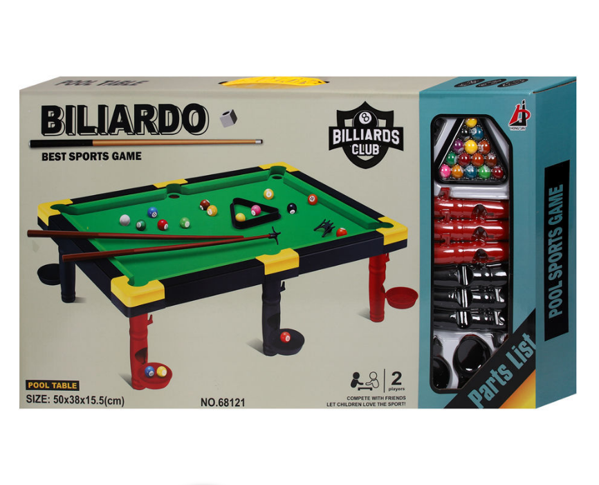 ბილიარდს მოყვება მაგიდის სადგამები, ბურთის დამჭერები, რომელიც უნდა დაამაგროთ სადგამზე, ასევე მოყვება ჯოხი და ბურთები