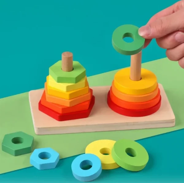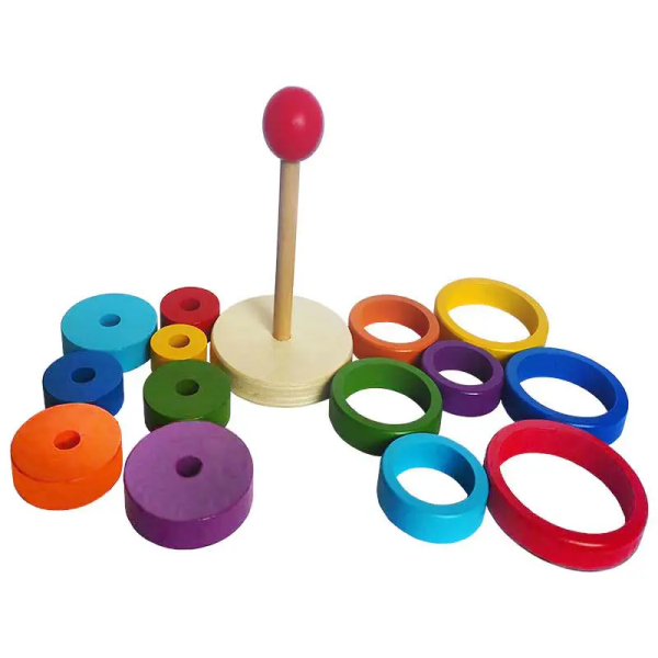 ხის პირამიდის დახმარებით თქვენი პატარა შეისწავლის ფერადი ფიგურებით პირამიდის აწყობას, ფიგურებს განასხვავებს ერთმანეთისგან ზომის მიხედვით და შეძლებს თანმიმდევრობით დაალაგოს ისინი. იდეალური საგანმანათლებლო სათამაშოა, რომელიც ბავშვს მრავალფეროვანი თამაშით უზრუნველყოფს