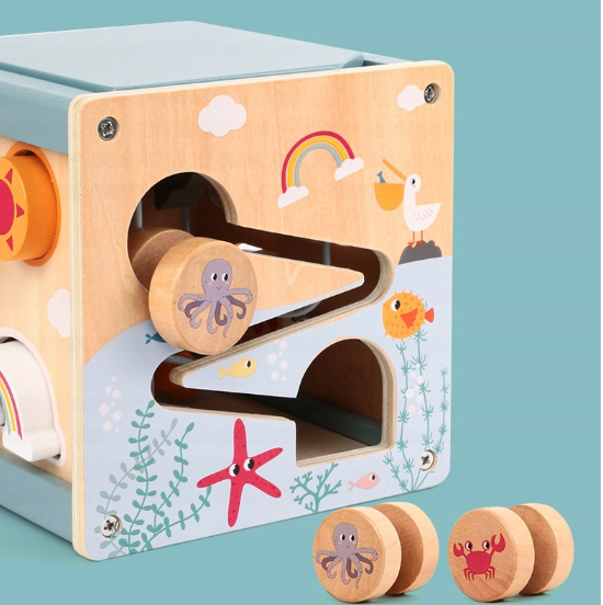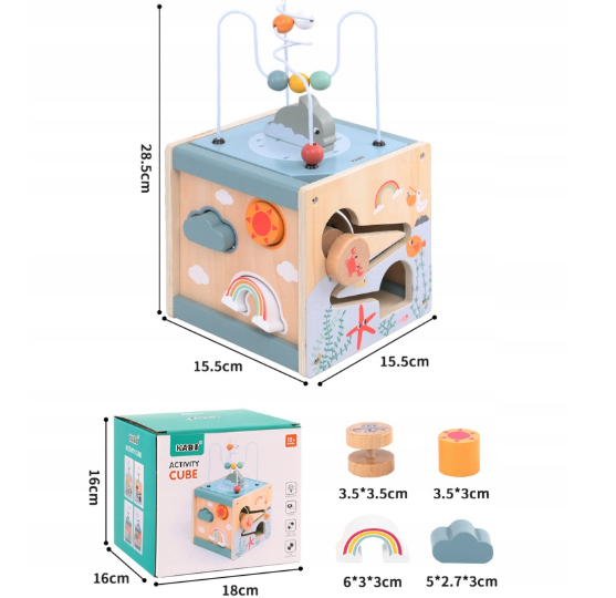 ლაბირინთის ყველა გვერდზე გამოსახულია სხვადასხვა ფუნქციის განმავითარებელი სათამაშო, ერთ გვერდზე გამოსახულია ცარიელი ფორმები სათამაშოს მოსათავსებლად, ასევე მოთავსებულია ფაზლი, ლაბირინთი, სათამაშო გავლენას ახდენს ბავშვის განვითარებაზე – ასტიმულირებს ფანტაზიას, ავითარებს ლოგიკურ აზროვნებას და ვიზუალურ მეხსიერებას,აღძრავს ბავშვს ინტერესს და უბიძგებს მას მრავალჯერ გამოიყენოს.