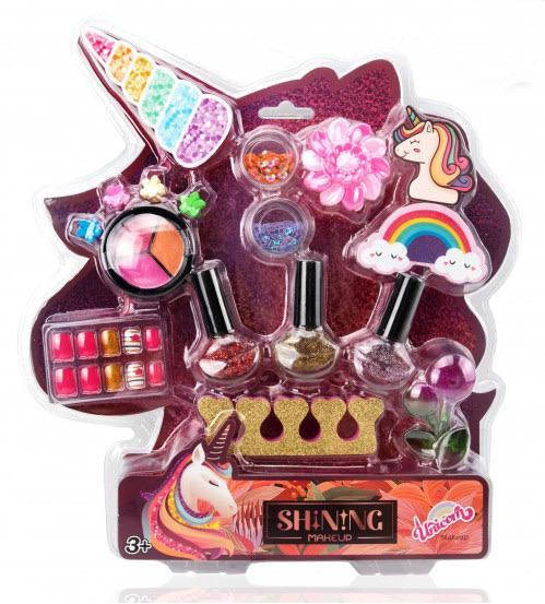 The set includes: nails, children’s nail polish, eye shadows, hair clips, beads.
